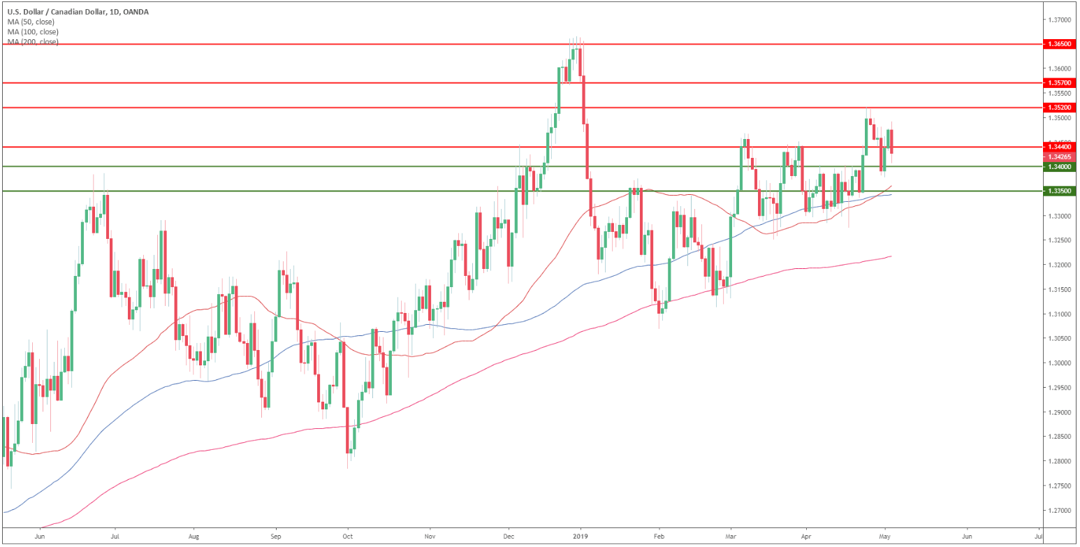- USD/CAD is trading below 1.3440 and the 50 SMA suggesting a correction down in the medium-term.