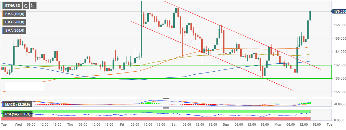 Ethereum is still inching closer to the critical resistance at $170 from the previous update where it had just broken past the descending trendline barrier. The bullish momentum emanated from the support congestion zone between $160-$162. This zone has been very instrumental to the buyers who have been fighting to ensure that they stop declines below $160 since Tuesday last week.
