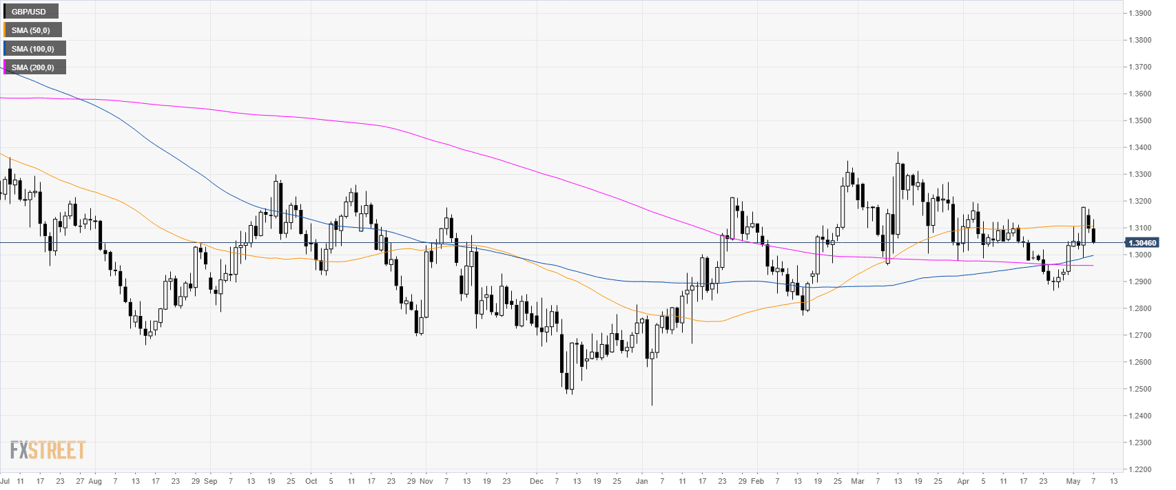 - GBP/USD is trading below 1.3100 figure and its 200 SMA.