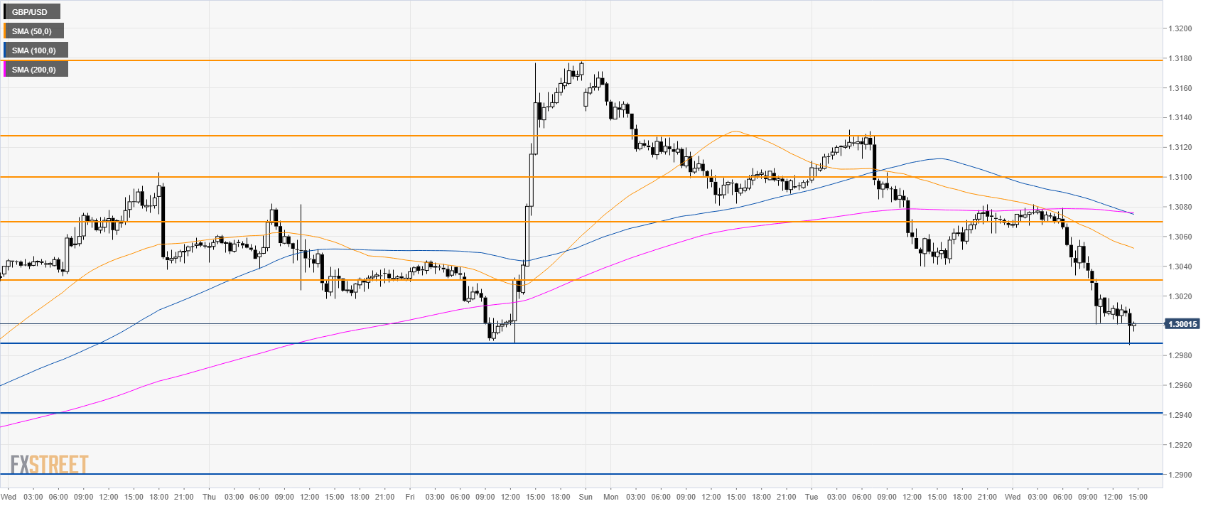 - Cable is trading at daily lows and attempting to break the 1.3000 figure.