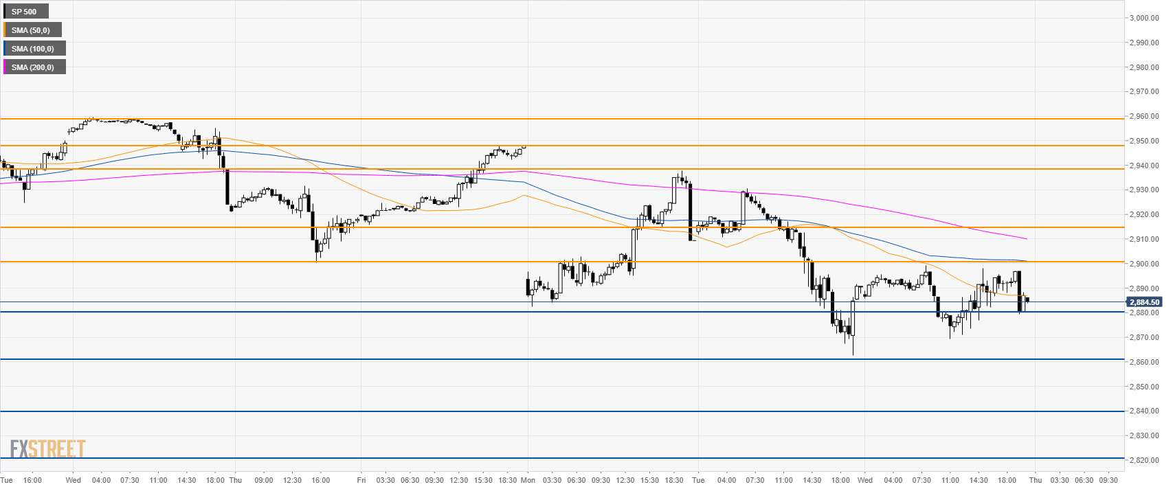 Bears need to break below 2,860.00 to reach 2,840.00 and 2,820.00 levels.