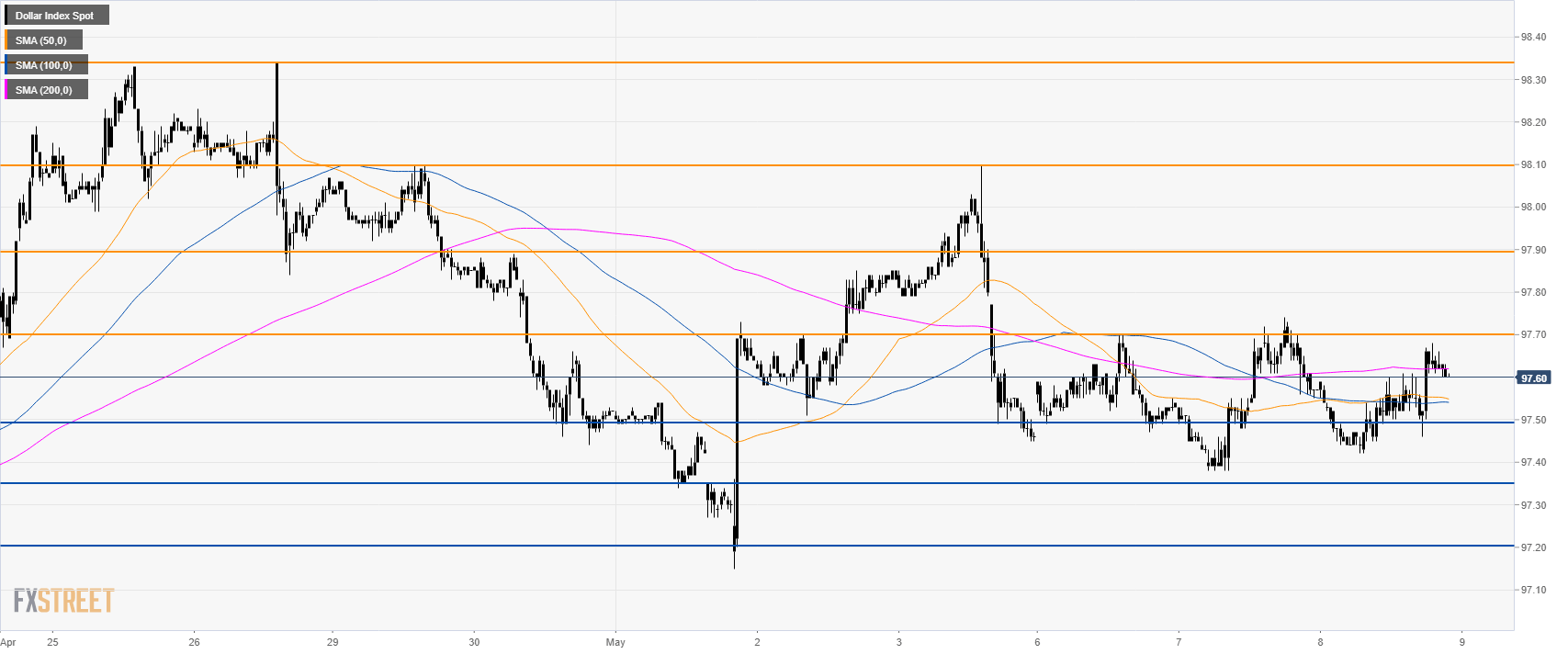 Support is seen at 97.50, 97.35 and 97.20 level.