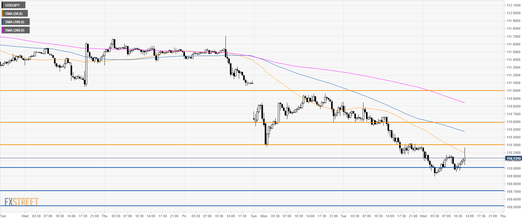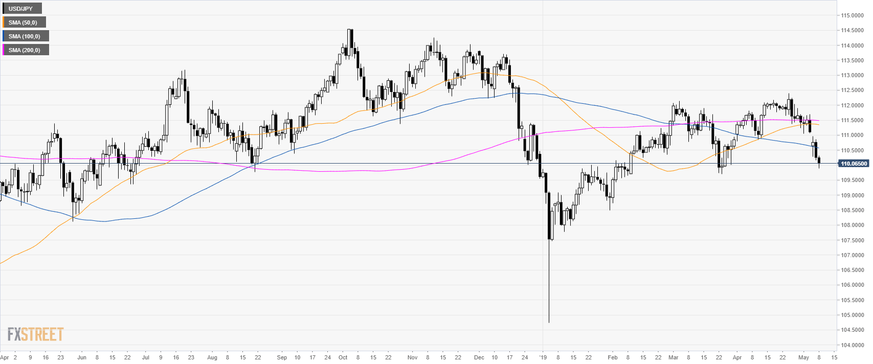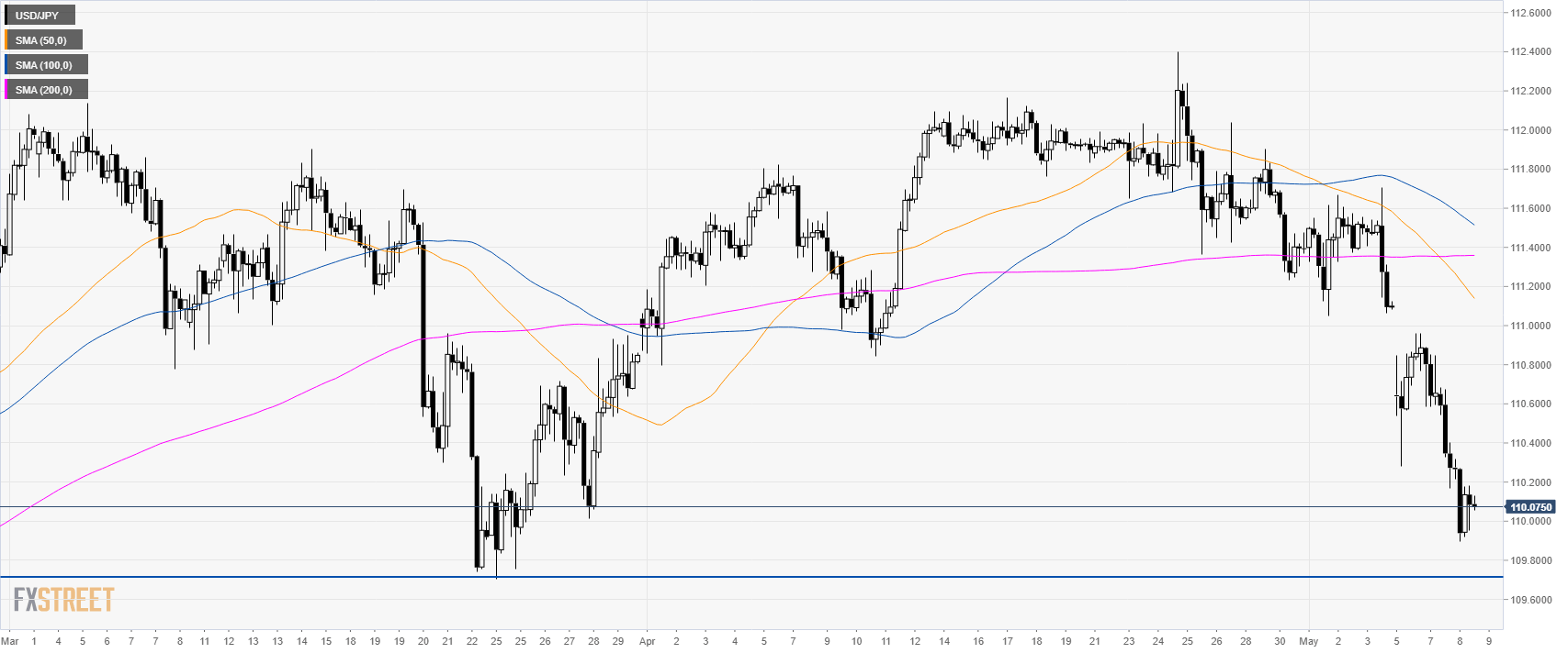 USD/JPY is trading steeply down near 110.00 figure and its main SMAs suggesting a bearish bias in the medium-term.