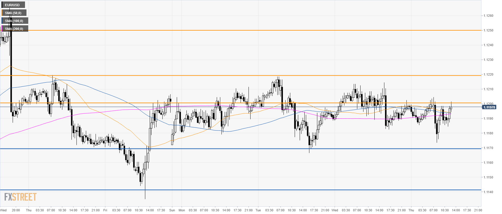 EUR/USD is trading below its main SMAs while the market has been consolidatin.g since this Monday.
