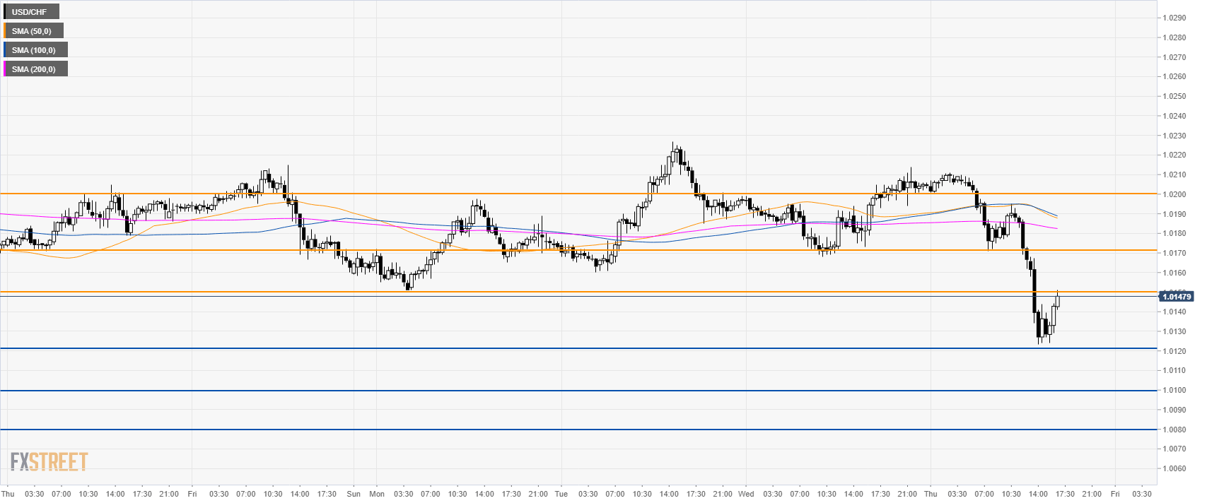 Home USD/CHF technical analysis: Greenback falls near 1.0150 against CHF