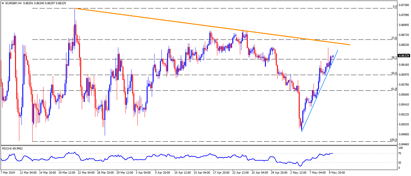 With an upward sloping trend-line portraying the pair’s strength, EUR/GBP is on the bids near 0.8635 during early Friday.