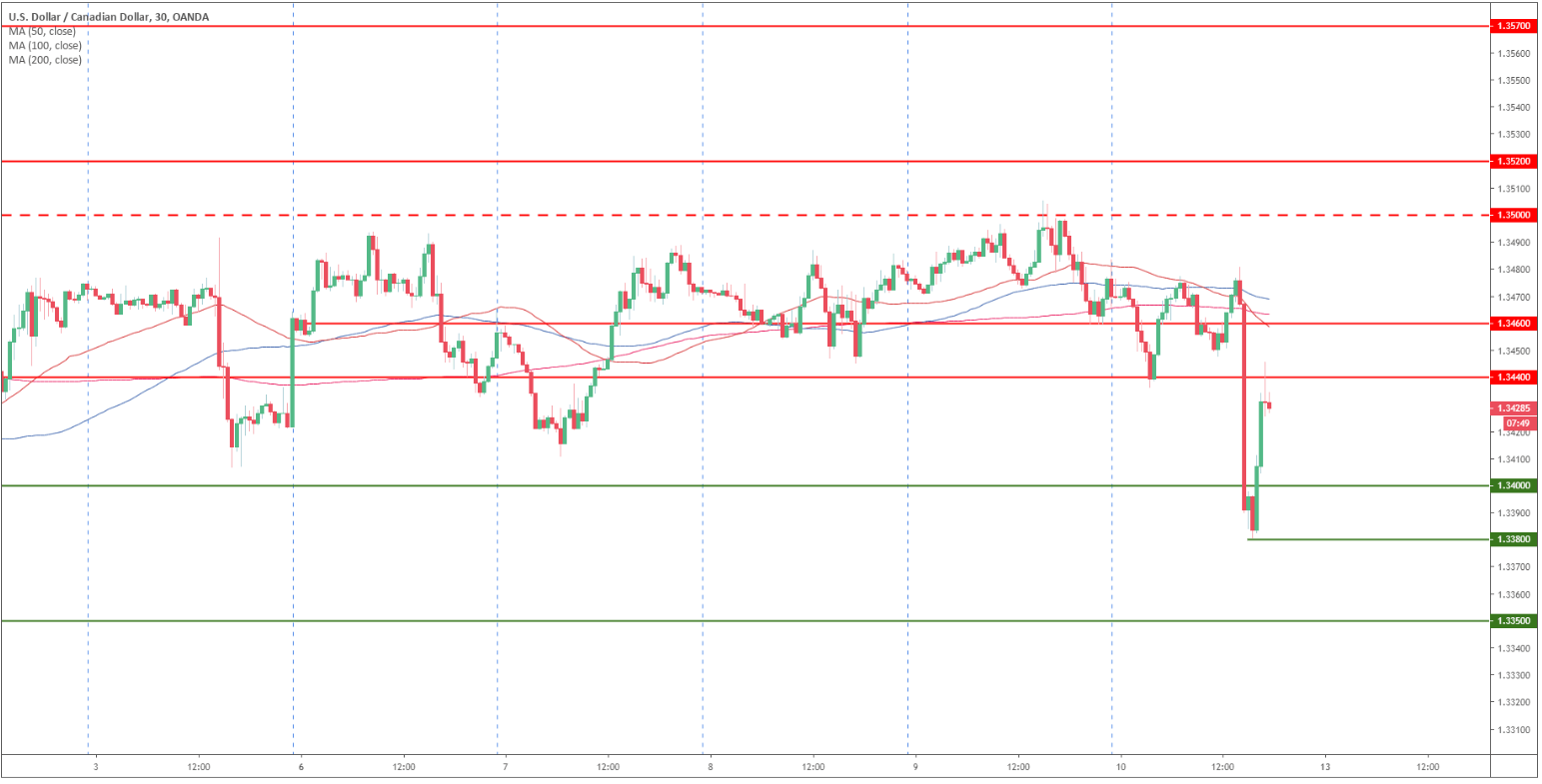 • The USD/CAD pair lost about 90 pips on the news but is now stabilizing near 1.3340 level.