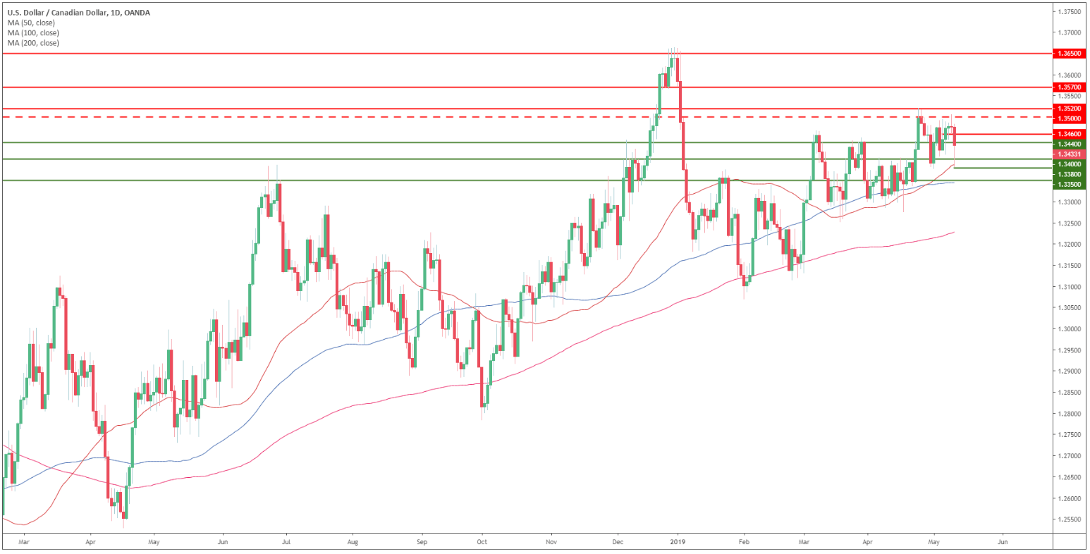USD/CAD stays in the 1.3400-1.3500 range while the market holds above the 200 SMA.