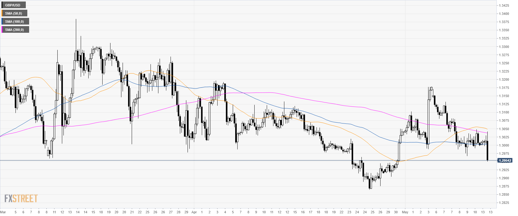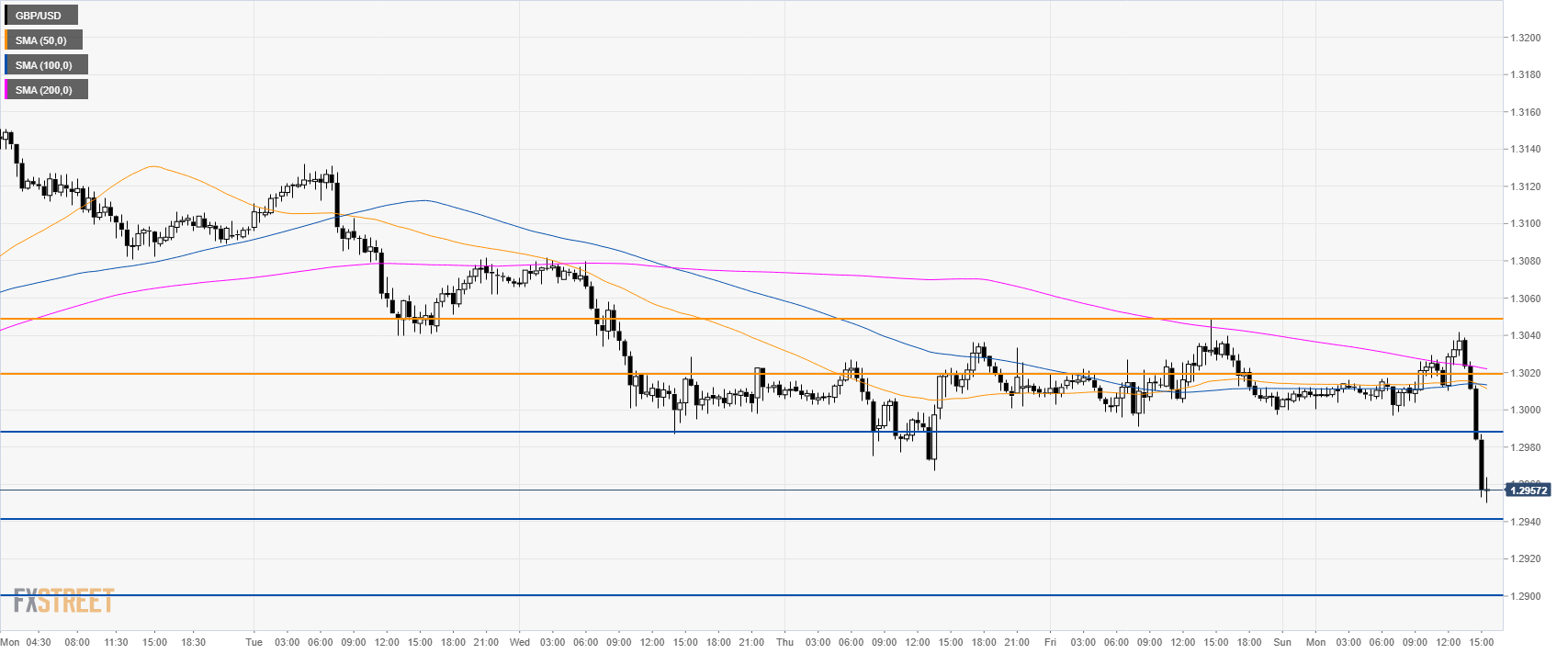 GBP/USD is trading down sharply as bears break the 1.3000 figure.
