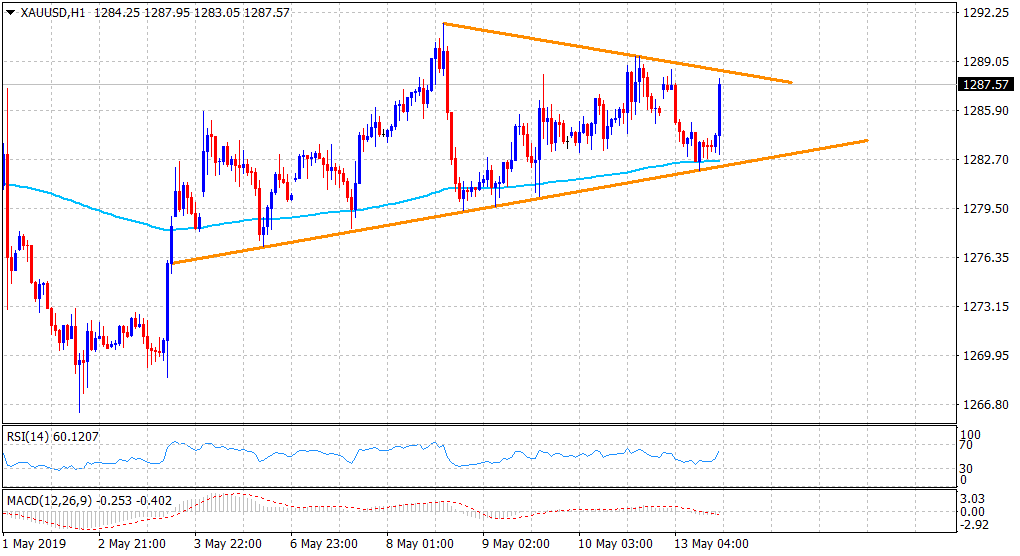 “¢   The prevailing risk-off environment, triggered by escalating US-China trade tensions helped the precious metal to stall its intraday slide near a one-week-old ascending trend-line.