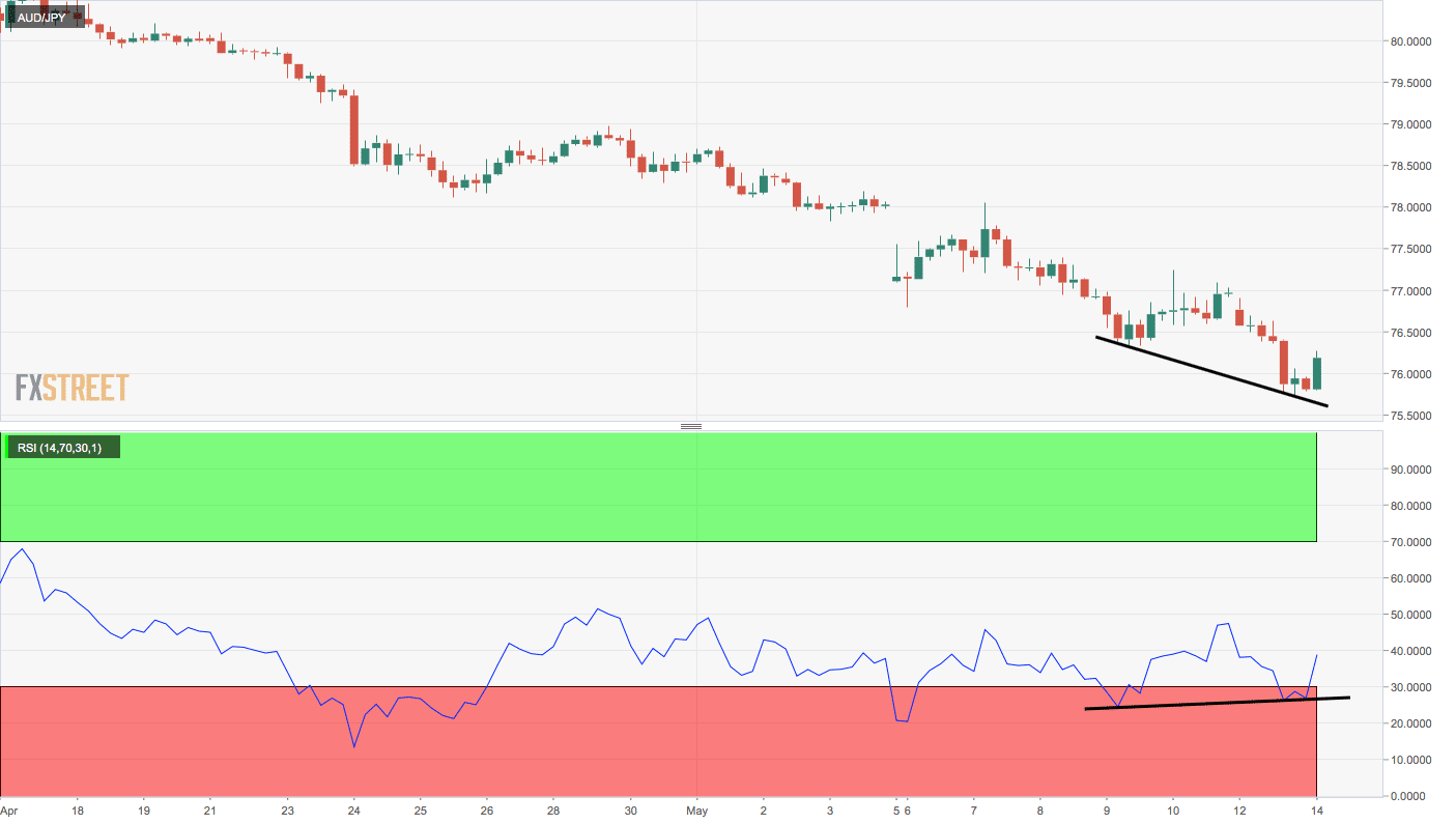 The bounce is likely associated with the oversold conditions reported by the 14-day relative strength index (RSI) and could be extended further to the descending (bearish) 5-day moving average (MA), currently at 76.54, as the RSIs on both the hourly and 4-hour charts are reporting bullish divergences.