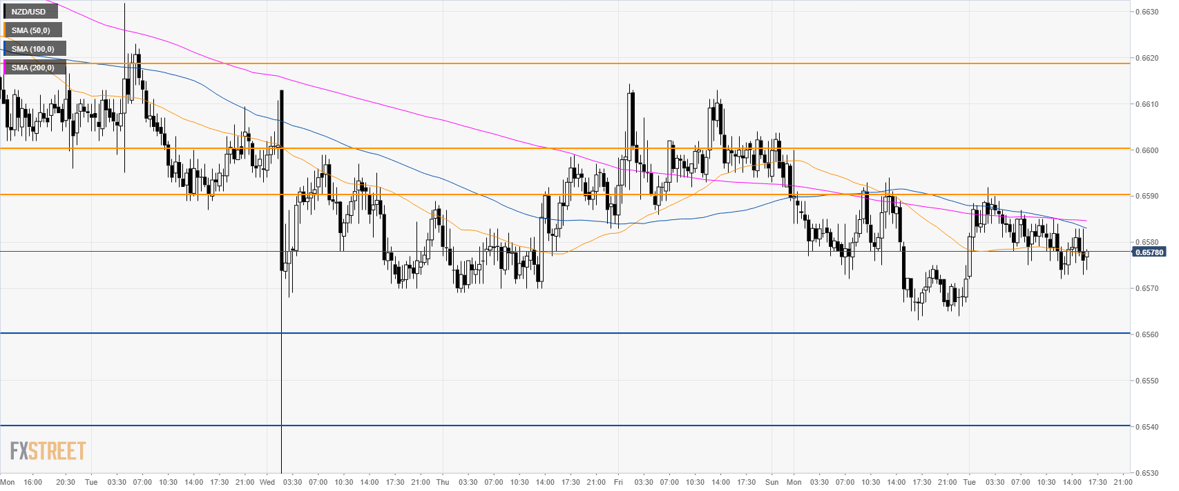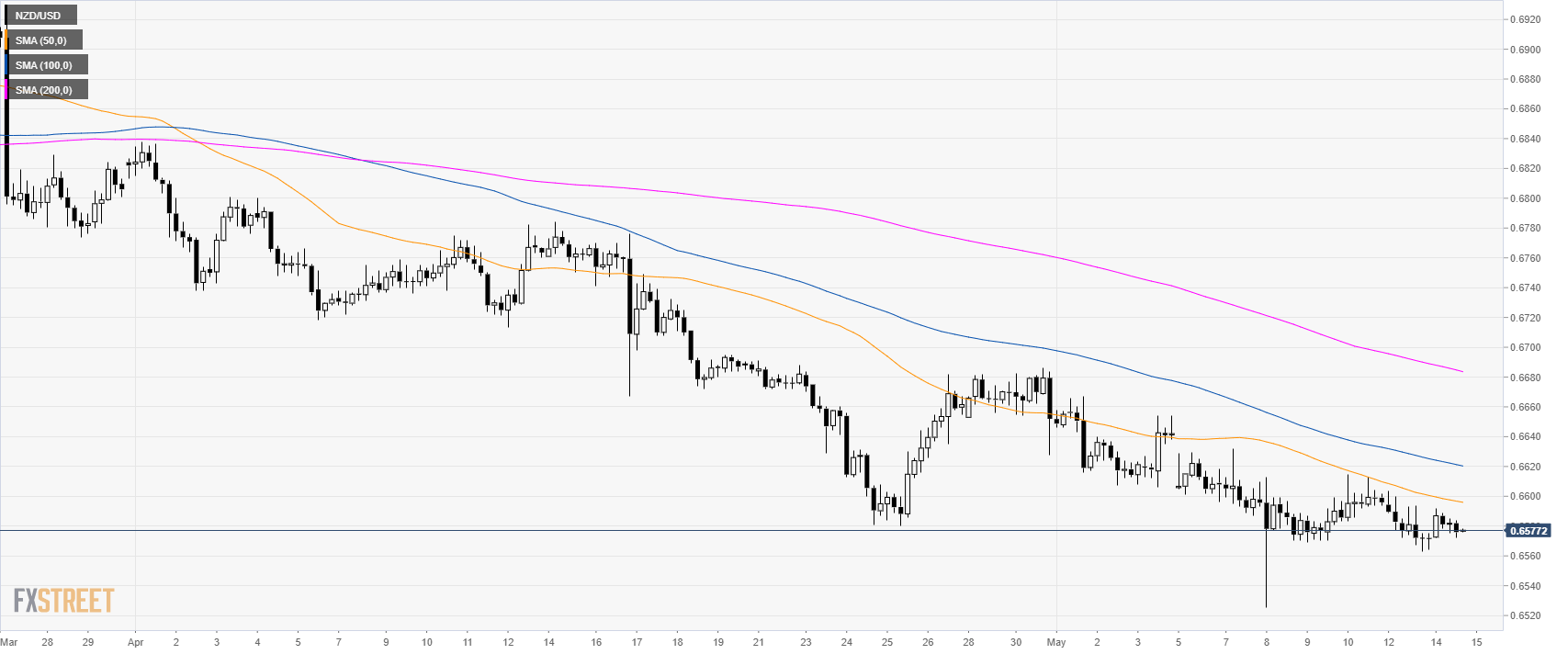 NZD/USD is trading in a bear trend below the 0.6600 handle and its main simple moving averages (SMAs).
