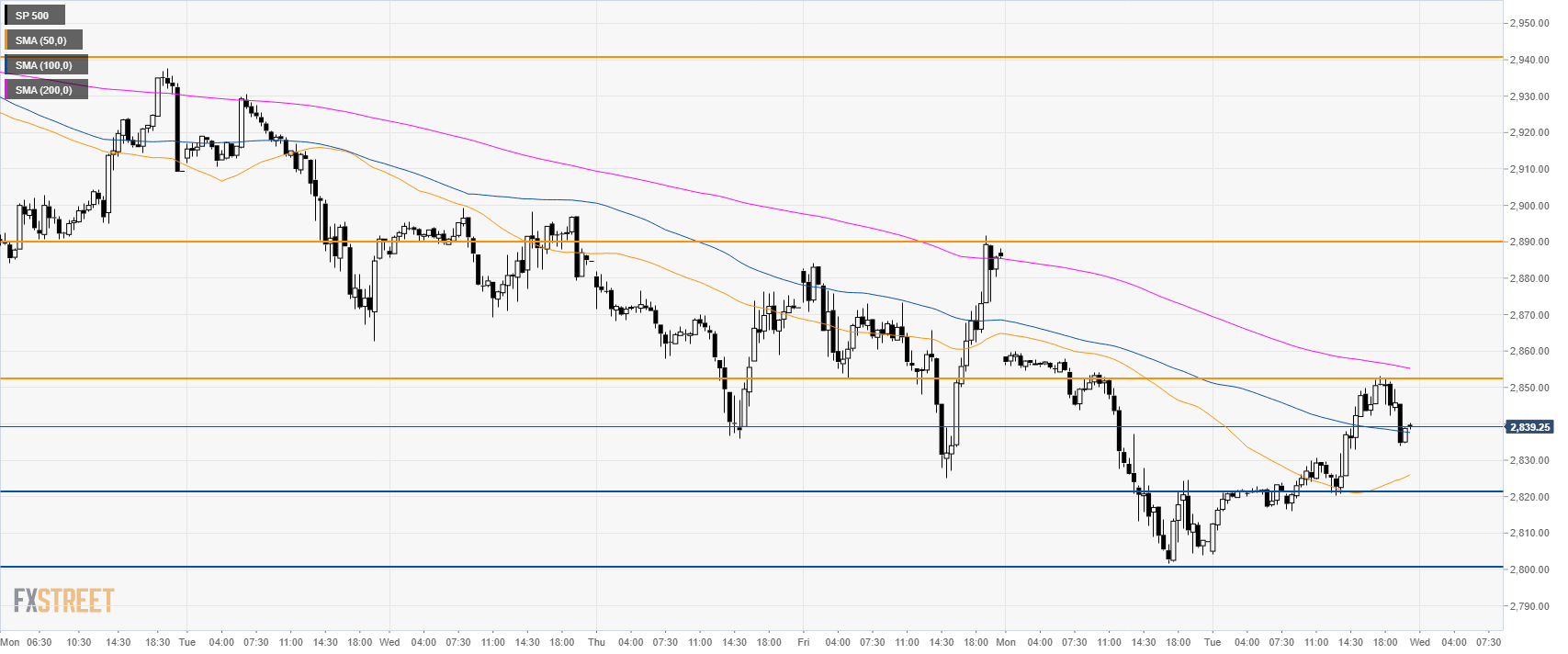 The Index pushed higher throughout the day and is about to close above the 50 and 100 SMA. Bulls seem to be back and they will need to trade beyond 2,853.00 resistance to reach 2,890.00 and 2,940.00 to the upside. Support is at the 2,820.00 and 2,800.00 price level.
