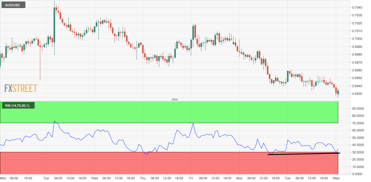 The Aussie dollar, however, is showing resilience. The currency pair has recovered from 0.6925 to 0.6935, creating a bullish divergence of the RSI on the hourly chart.