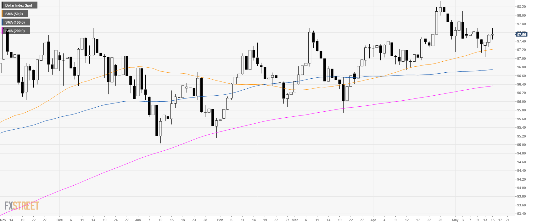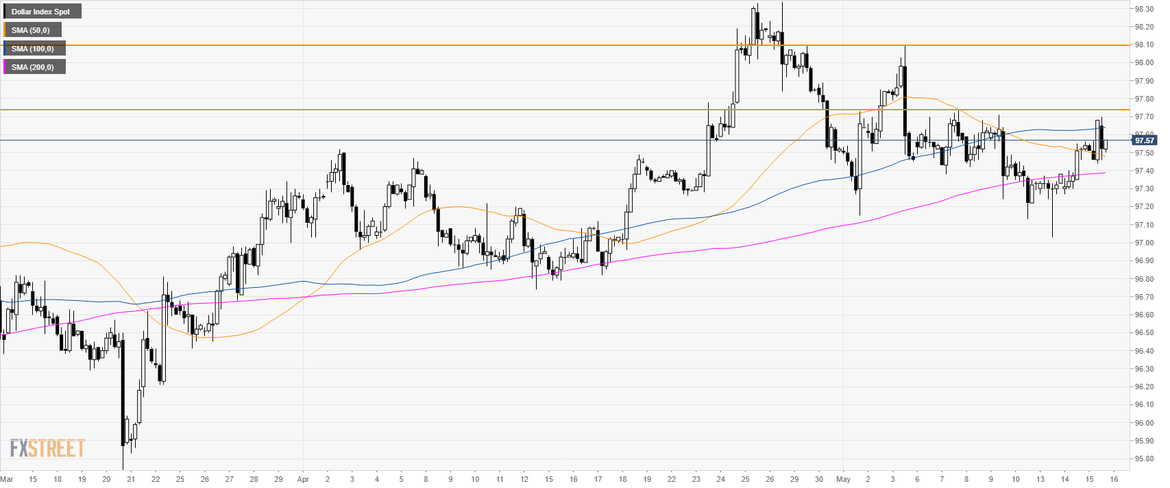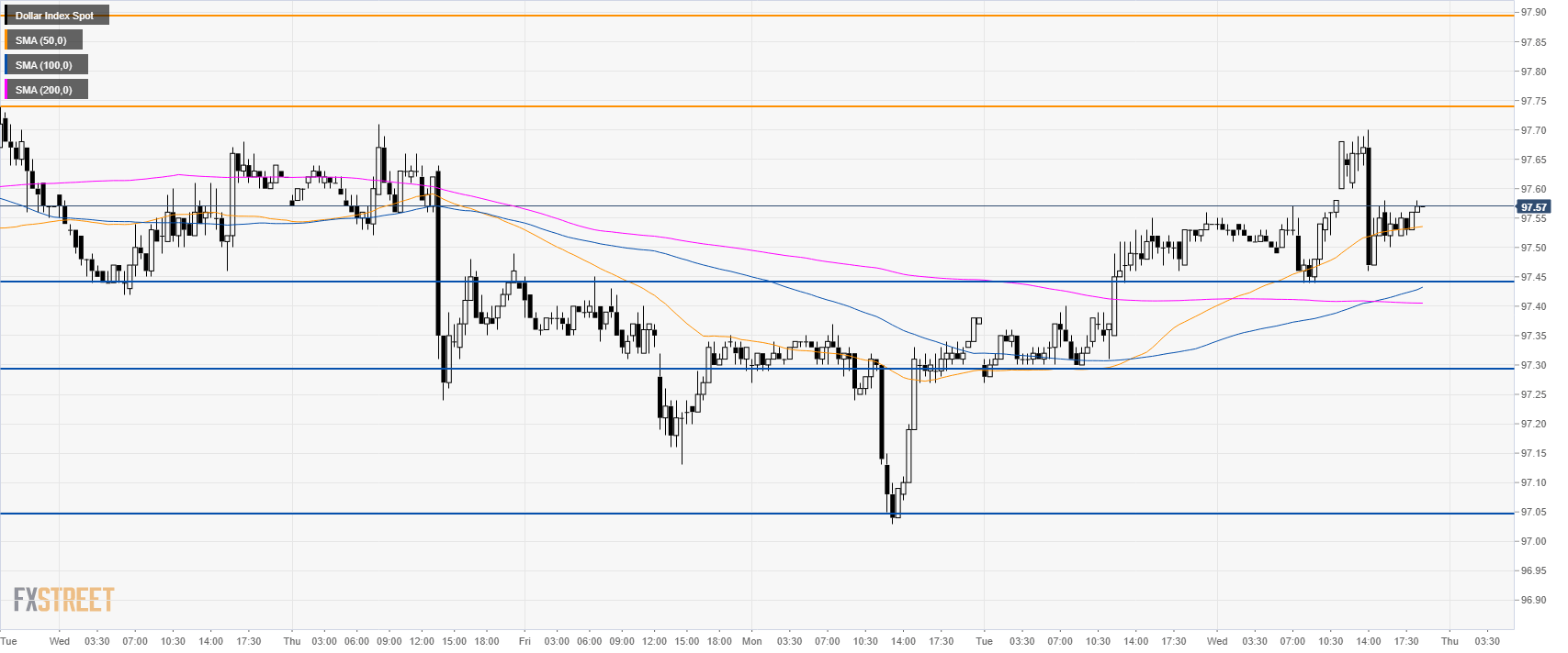 The US Dollar Index (DXY) is trading in a bull trend above its main simple moving averages (SMAs). The index reached 97.70 on Wednesday but gave back some of its gains on the back of comments from US President Trump. It has been reported that tariffs might be delayed on autos.