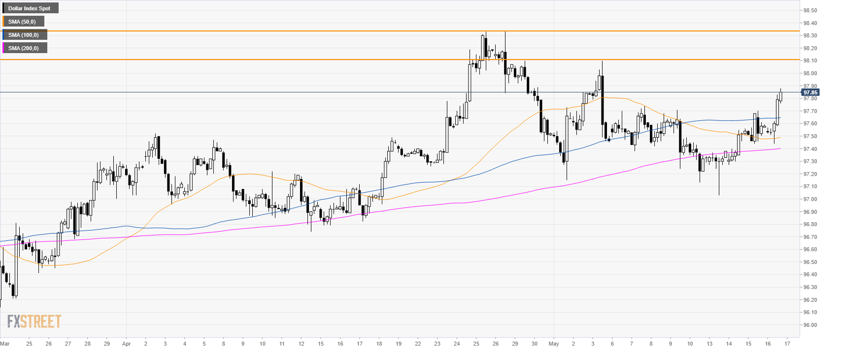 DXY is trading above its main SMAs suggesting bullish momentum in the near term. Bulls will try to break 97.90 to reach 98.10 and 98.34 to the upside. Immediate support is seen at 97.74 and 97.60 price level.