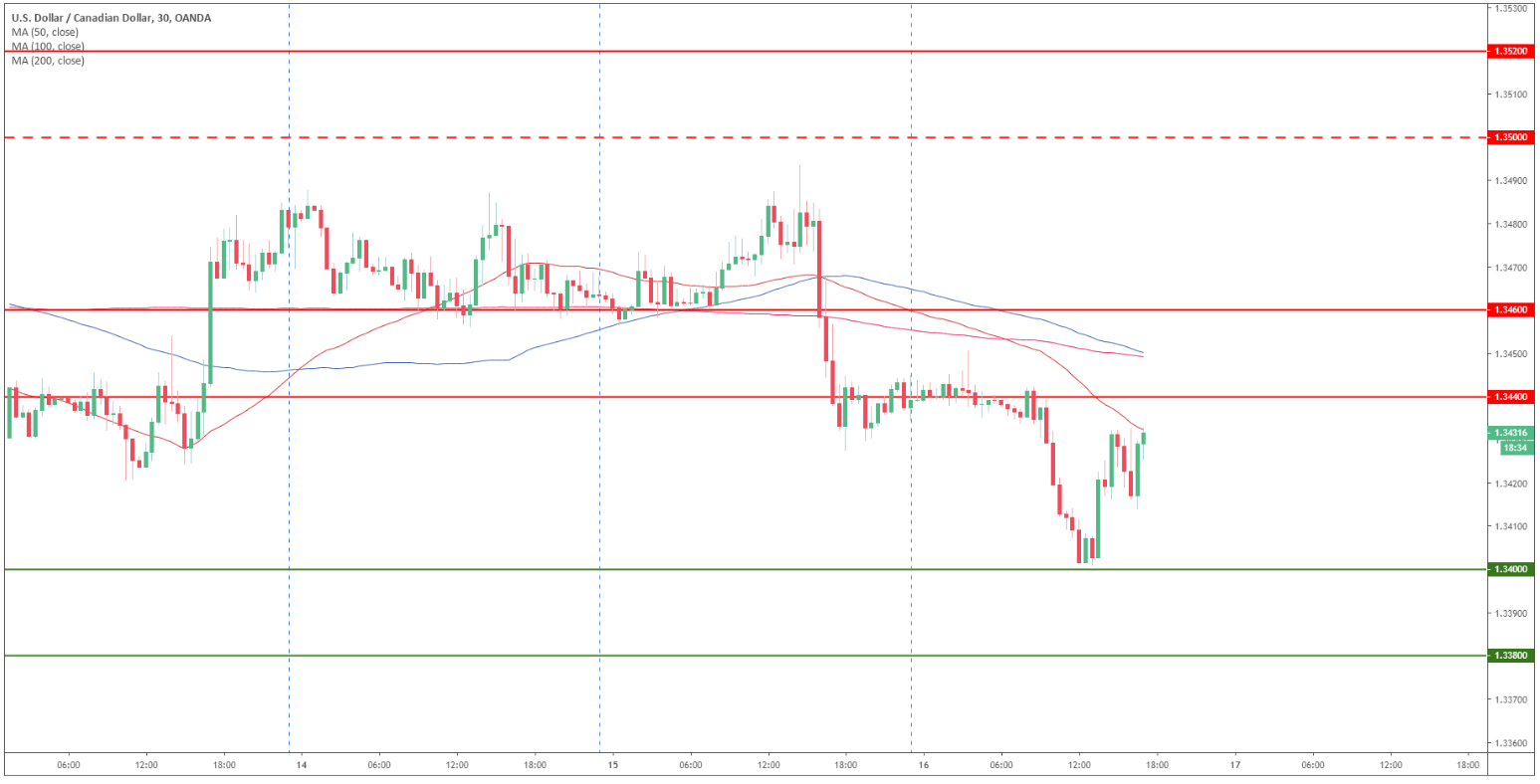 - USD/CAD is trading in the 1.3400-1.3500 range.