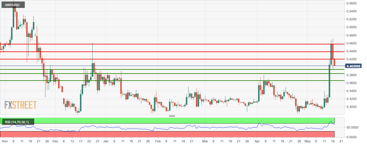 - XRP/USD went down from $0.419 to $0.405 in the early hours of Friday.