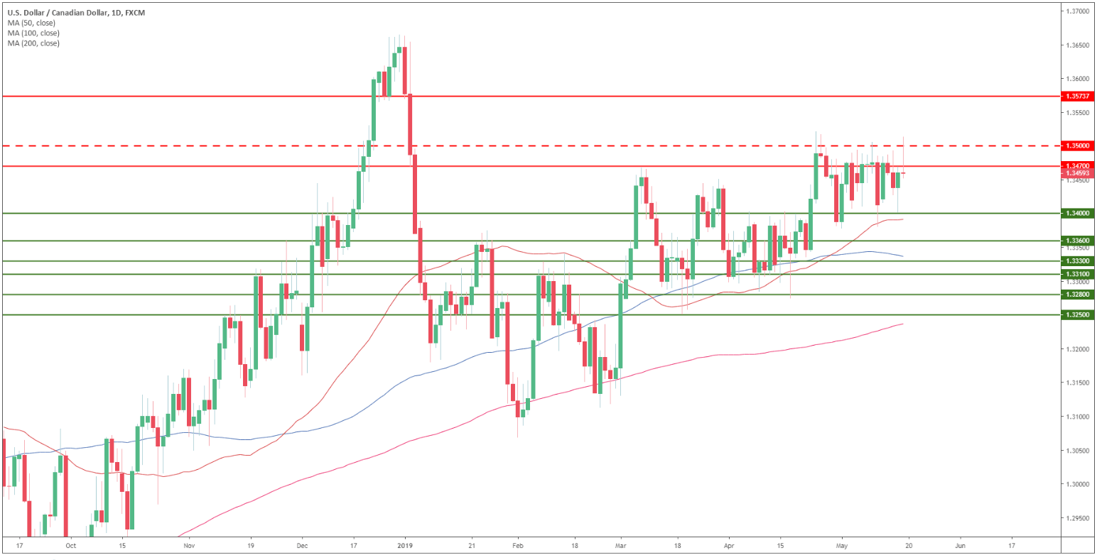 USD/CAD rejected the 1.3500 figure and is now trading below the 1.3470 resistance