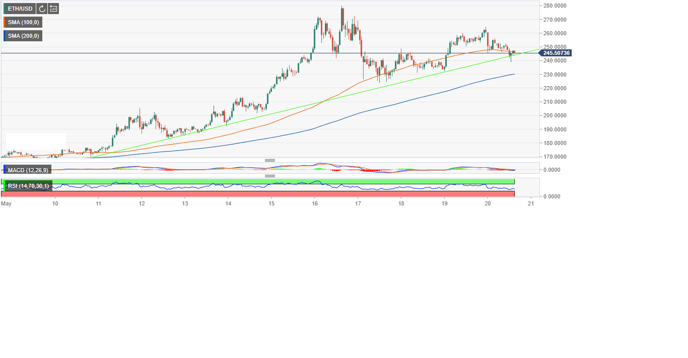 Ethereum is trading at $246 following declines of 5.5% on Monday. The incredible rise last week had Ethereum spewing fireworks across the cryptocurrency universe. While taking advantage of Bitcoin surge to $8,400, ETH/USD embarked on an upward trajectory towards $300 but formed a high at $280.17. However, the entire market reversed the trend as cryptocurrencies posted double-digit losses. It was as though Ethereum had come out the rags ascended into riches but return right back to the rags.