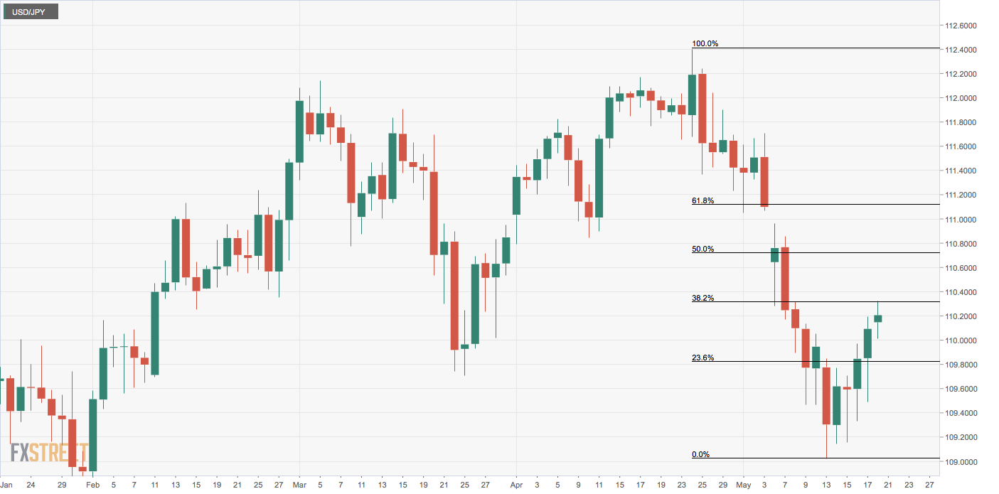 USD/JPY is currently trading at 110.18, having faced rejection at 110.31 – 38.2% Fib retracement of the sell-off from 112.40 to 109.02 – earlier today.