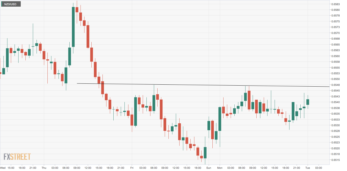 The NZD/USD pair is mildly bid this Tuesday morning in Asia and appears to be creating an inverse head-and-shoulders bullish reversal pattern with the neckline resistance at 0.6547.