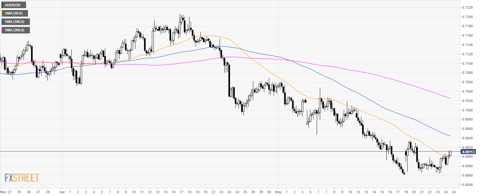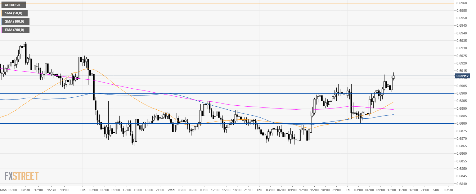 The current USD weakness is giving AUD/USD a boost while bulls are breaking above 0.6900 and and the 50 SMA.