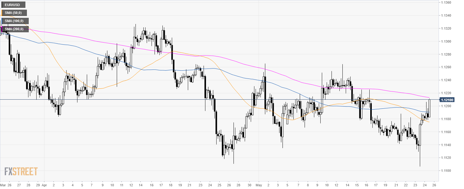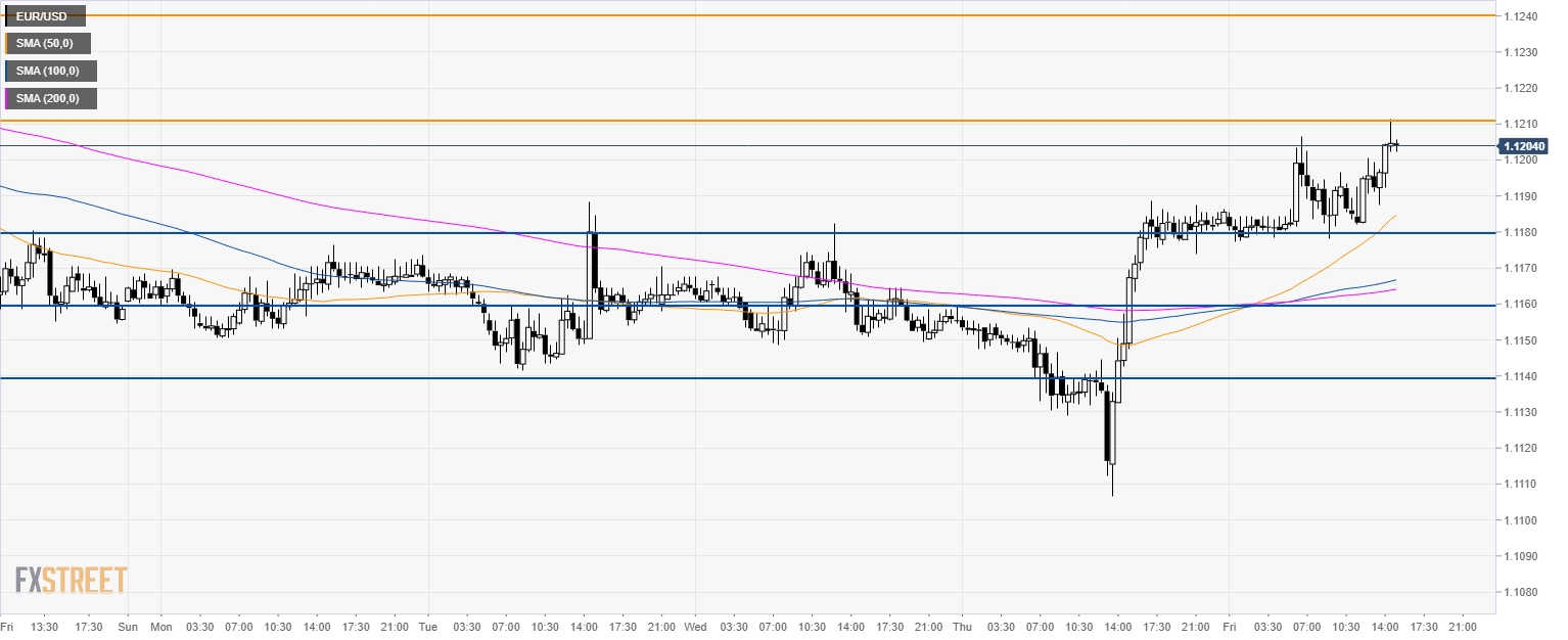 EUR/USD technical analysis: Euro trading at 5-day high and challenging 1.1210 strong resistance