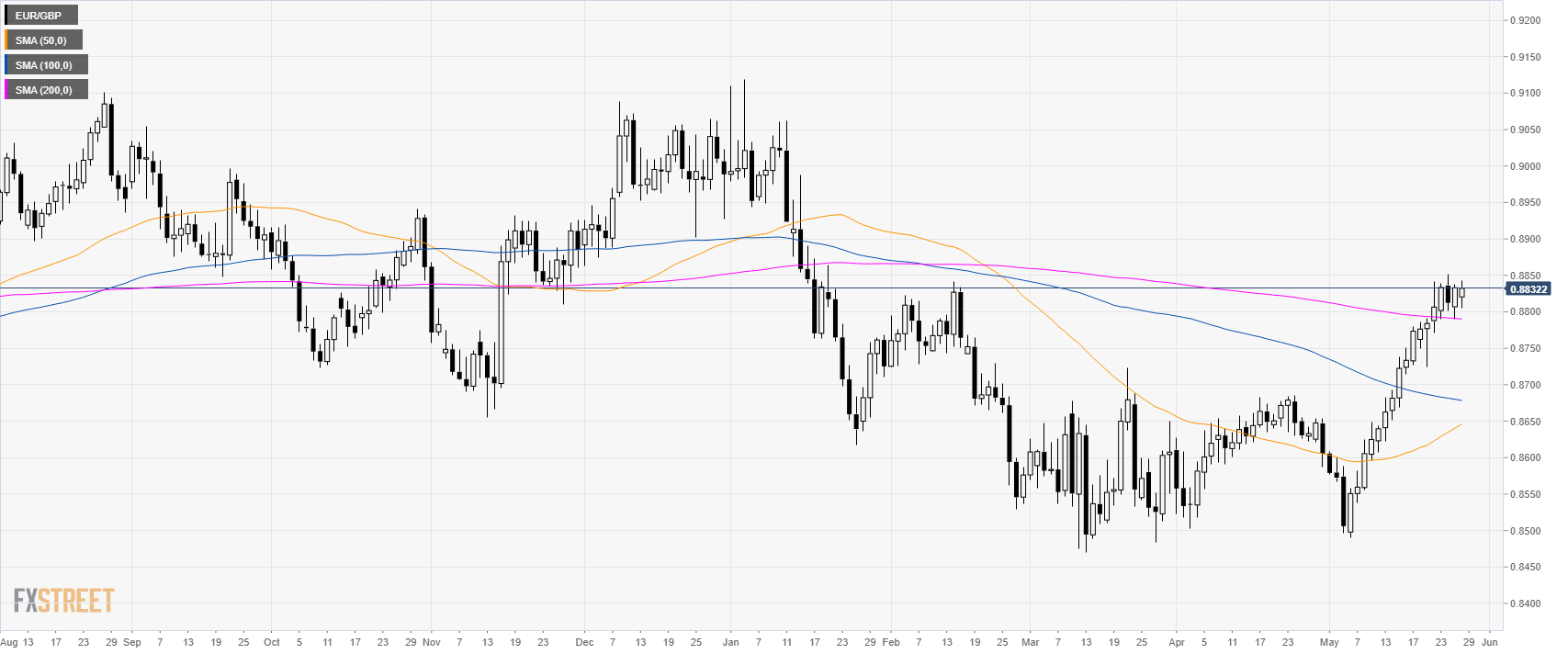 EUR/GBP enjoyed a rather bullish month in May as the market broke to 3-month high and above the 200 simple moving average (SMA).