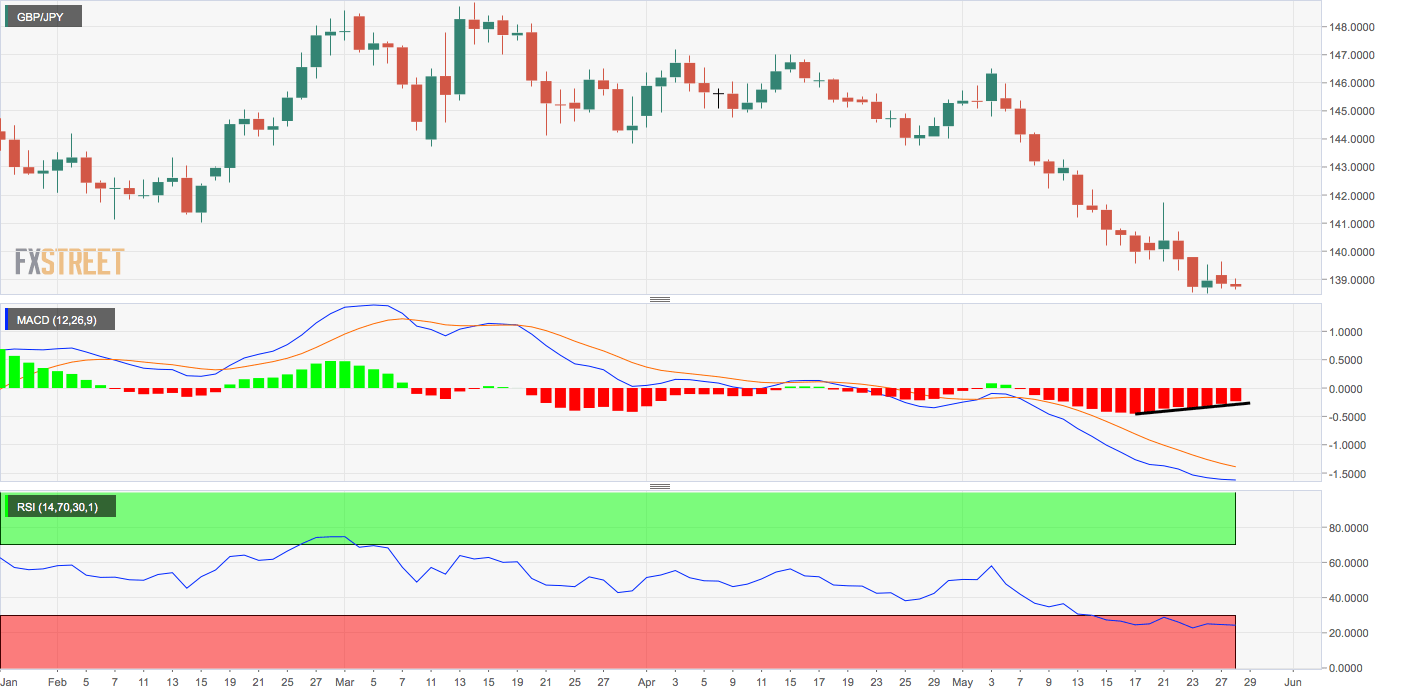 GBP/JPY is currently trading on the defensive around 138.75, having hit a high of 139.64 on Monday.