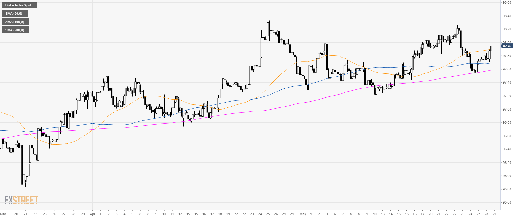 - The risk-off mood is helping the US Dollar to climb back near the 98.00 level.