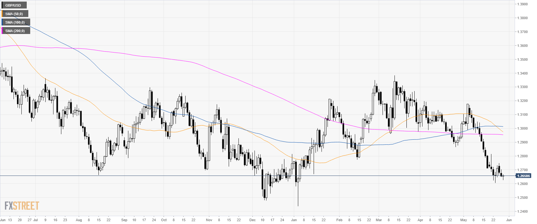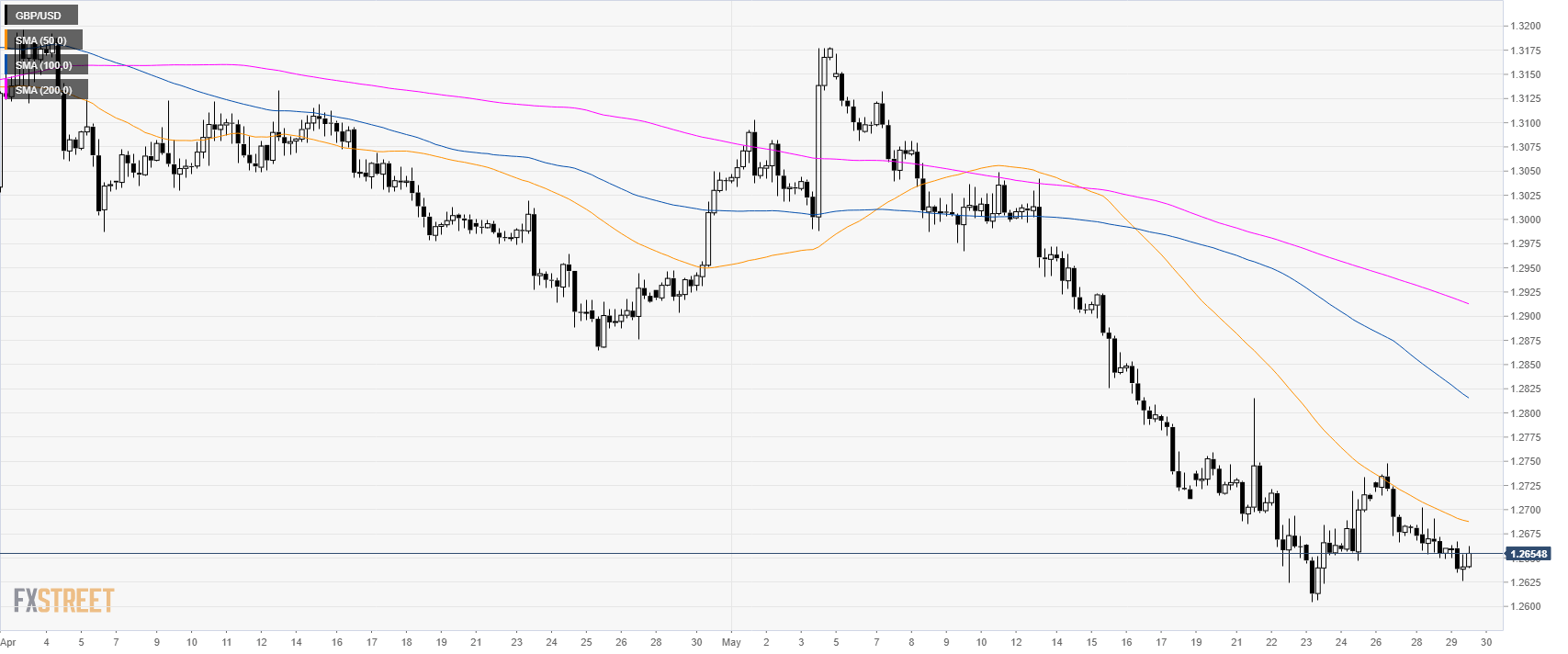 GBP/USD has been stabilizing above the 1.2600 figure while trading below its main simple moving averages (SMAs).