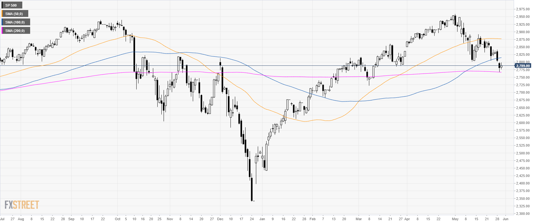 S&P500 technical analysis: US stocks remain fragile below the 2,800.00 mark