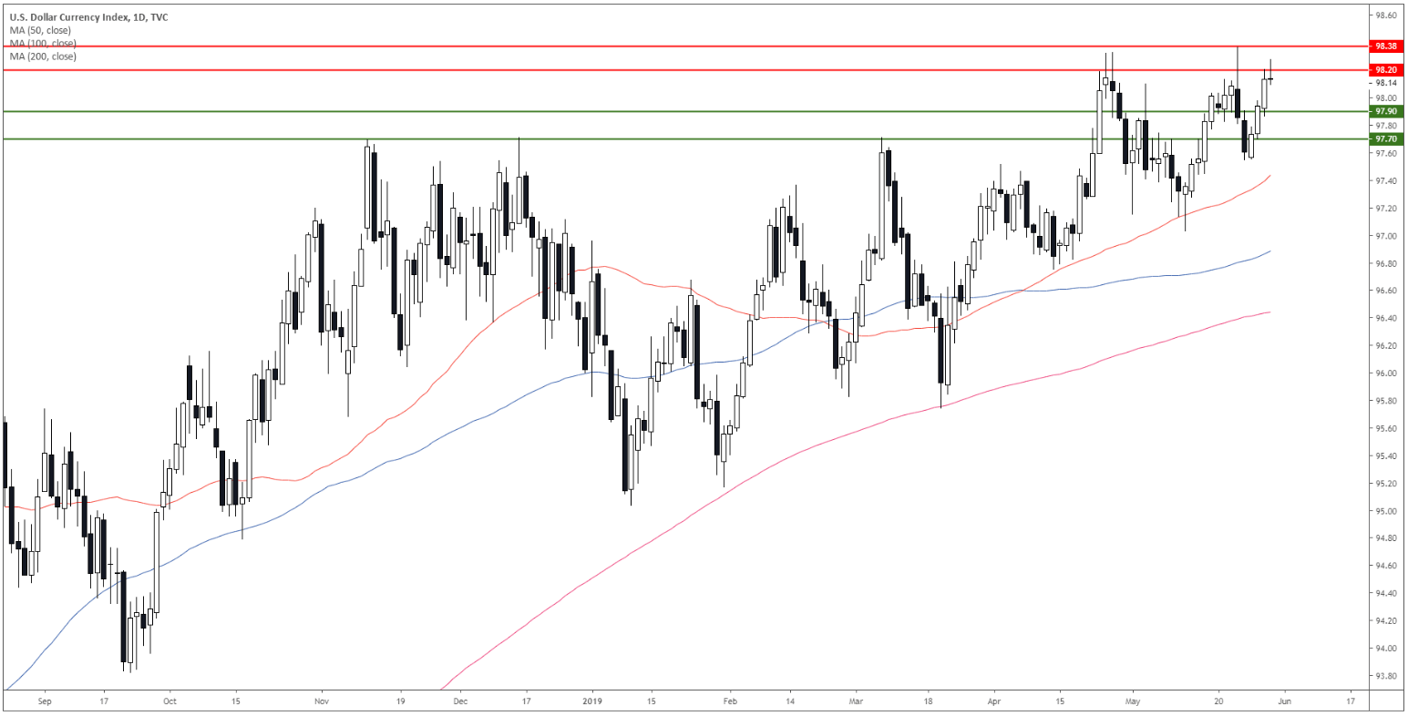 - DXY is very close to the 2019 high at 98.38.