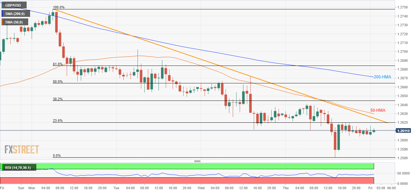 Despite refraining from additional declines due to the recent US Dollar (USD) weakness, the GBP/USD pair still trades under near-term resistances as it seesaws around 1.2615 during the initial Asian session on Friday.