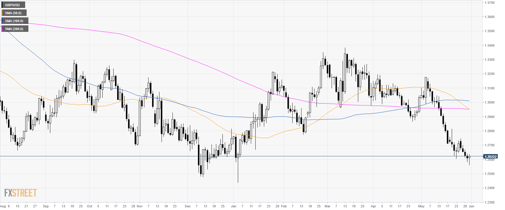 GBP/USD is attempting to stabilize above the 1.2600 figure while it is trading below its main simple moving averages (SMAs).