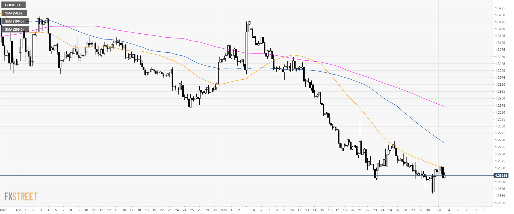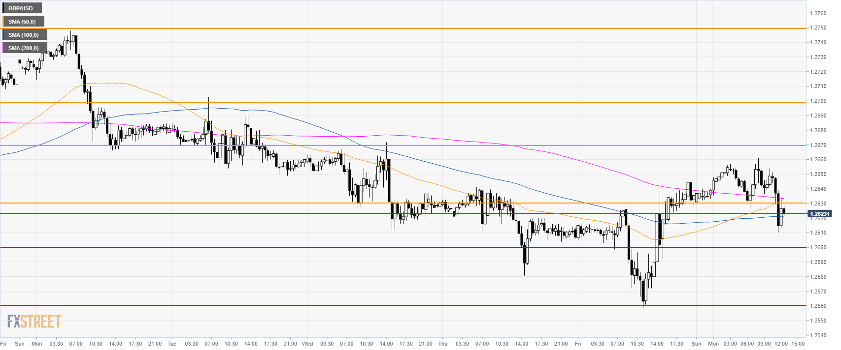 GBP/USD is trying to stabilize above the 1.2600 figure while trading below the main simple moving averages (SMAs).