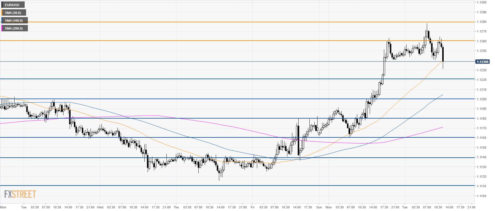 - EUR/USD is losing steam below the 1.1280 resistance.