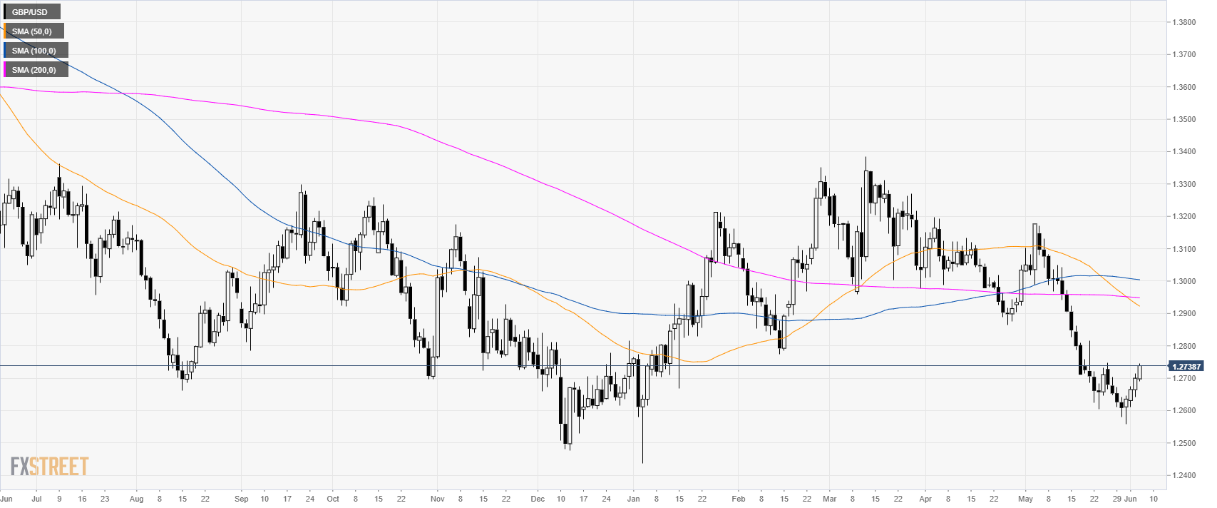 GBP/USD is currently up for the fourth consecutive day as the market is trading below its main simple moving averages (SMAs).