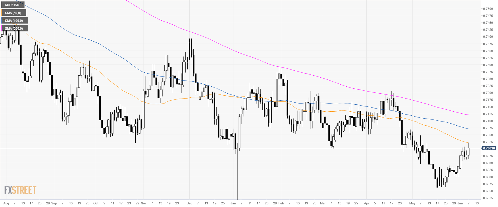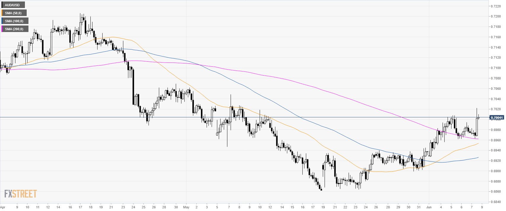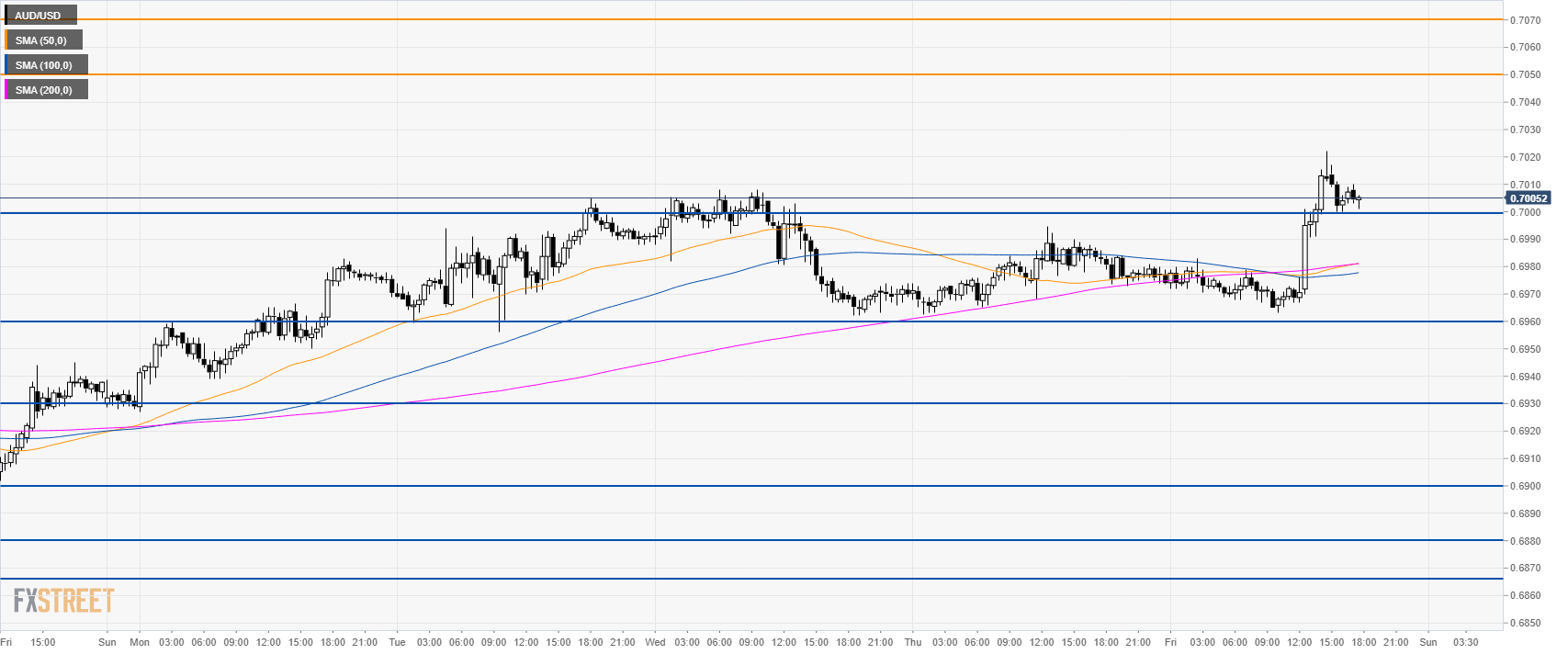 AUD/USD is trading just above the 0.7000 figure and its main SMAs.