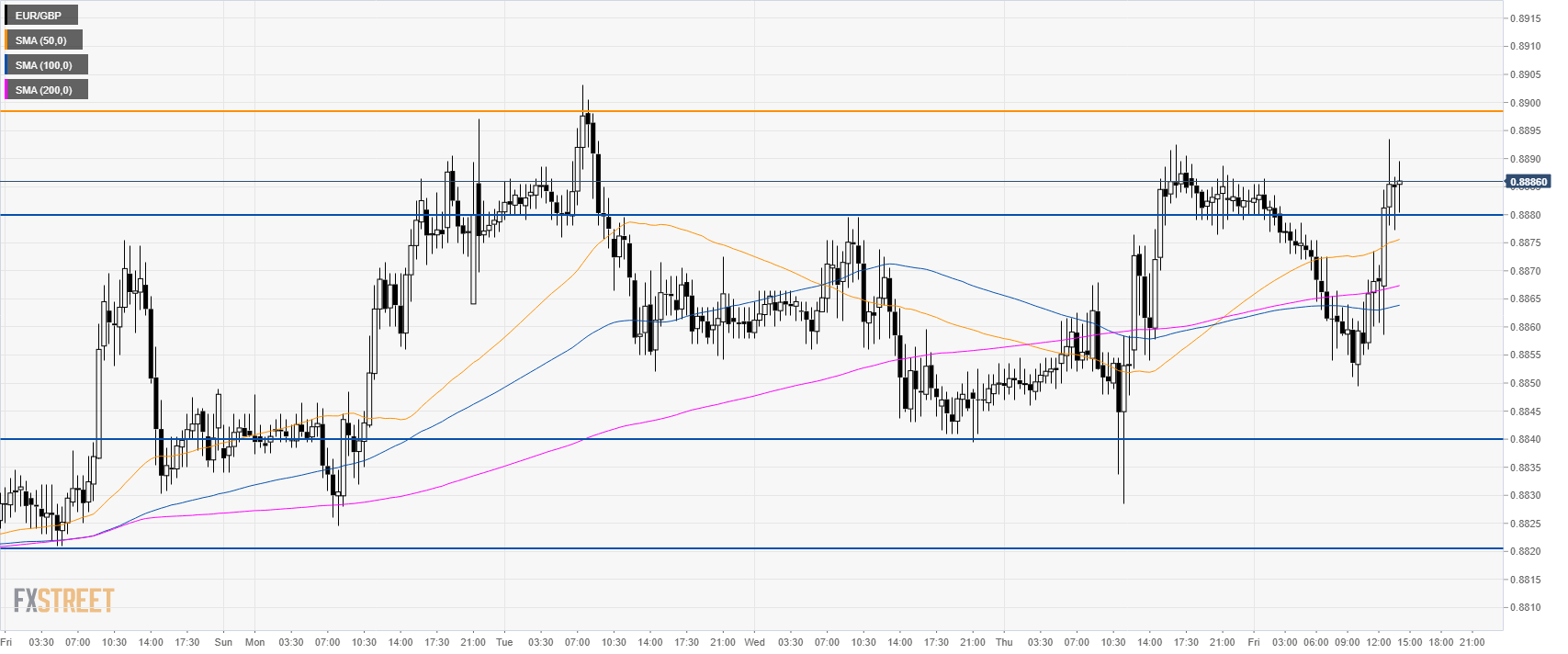 - EUR/GBP is testing the 0.8900 figure one more time.