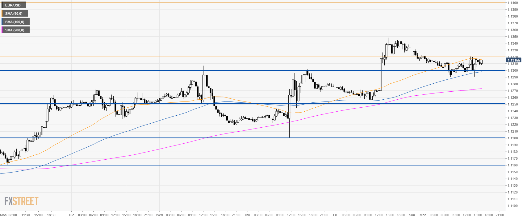 The market is testing 1.1320 resistance while trading above its main SMAs.