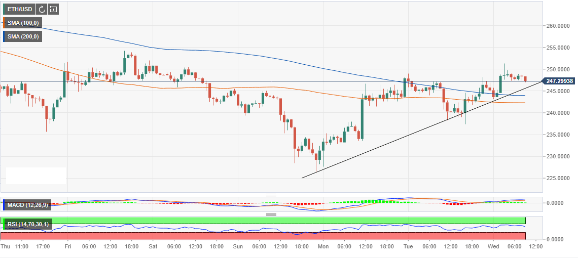 Despite the stalling, Bitcoin is trading above a short-term trendline on the 1-hour chart. Technicals suggest that the indecision will last longer than expected. The RSI is holding position above the average while the MACD is motionless above the mean line. Therefore, we can expect a breakout eventually especially if Bitcoin spikes beyond $8,000 and clears at $8,100 resistance.