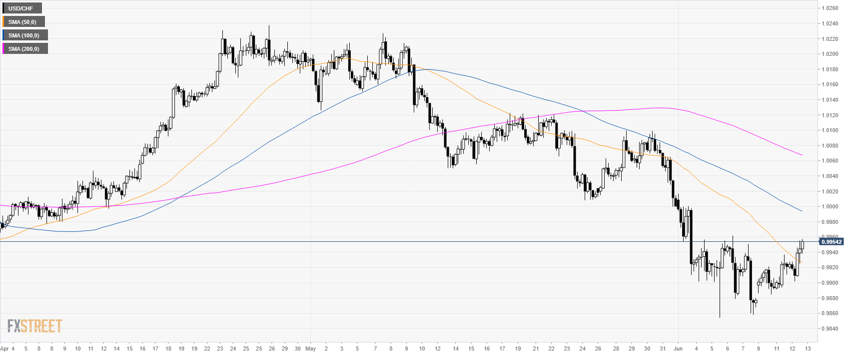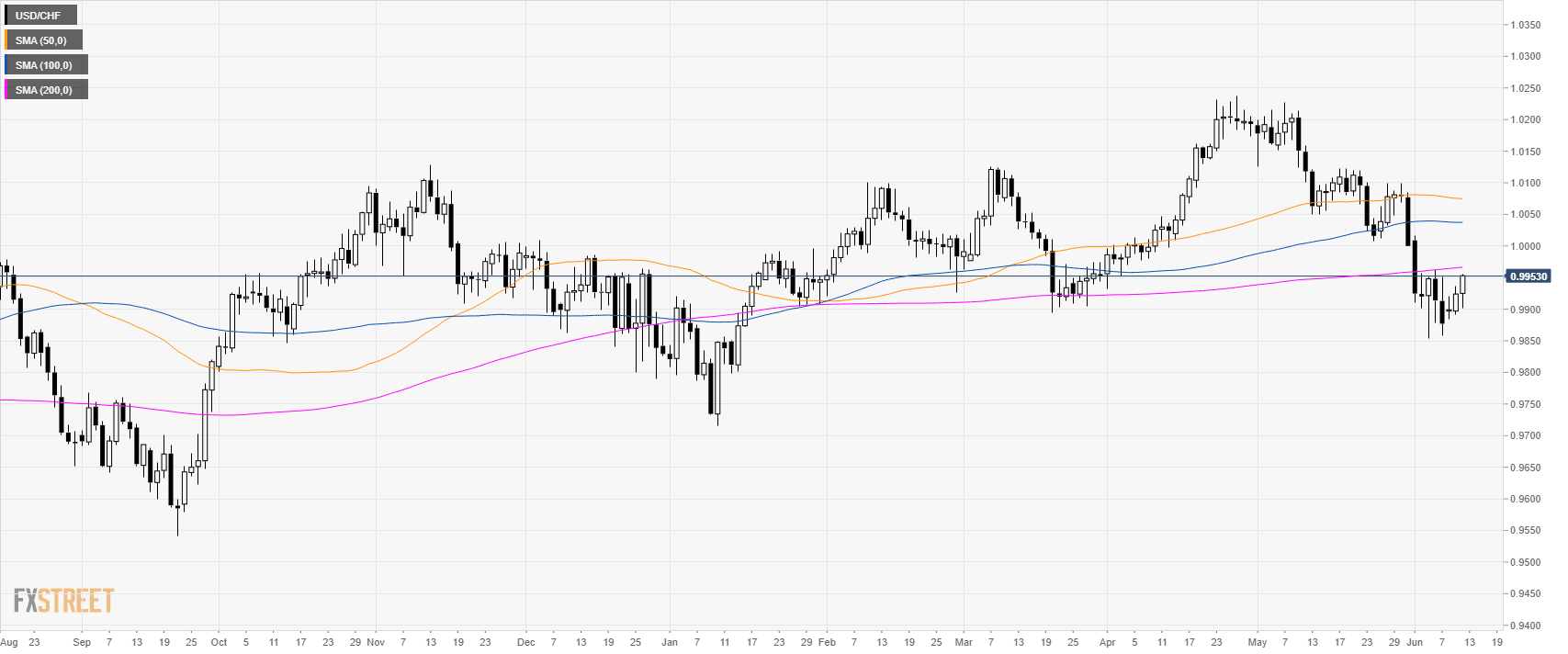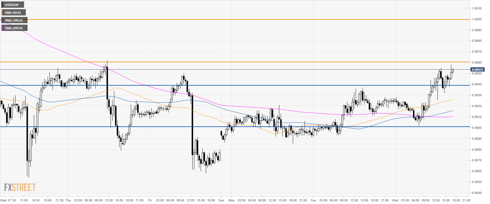 USD/CHF is trading near 6-day high above its 50 SMA.