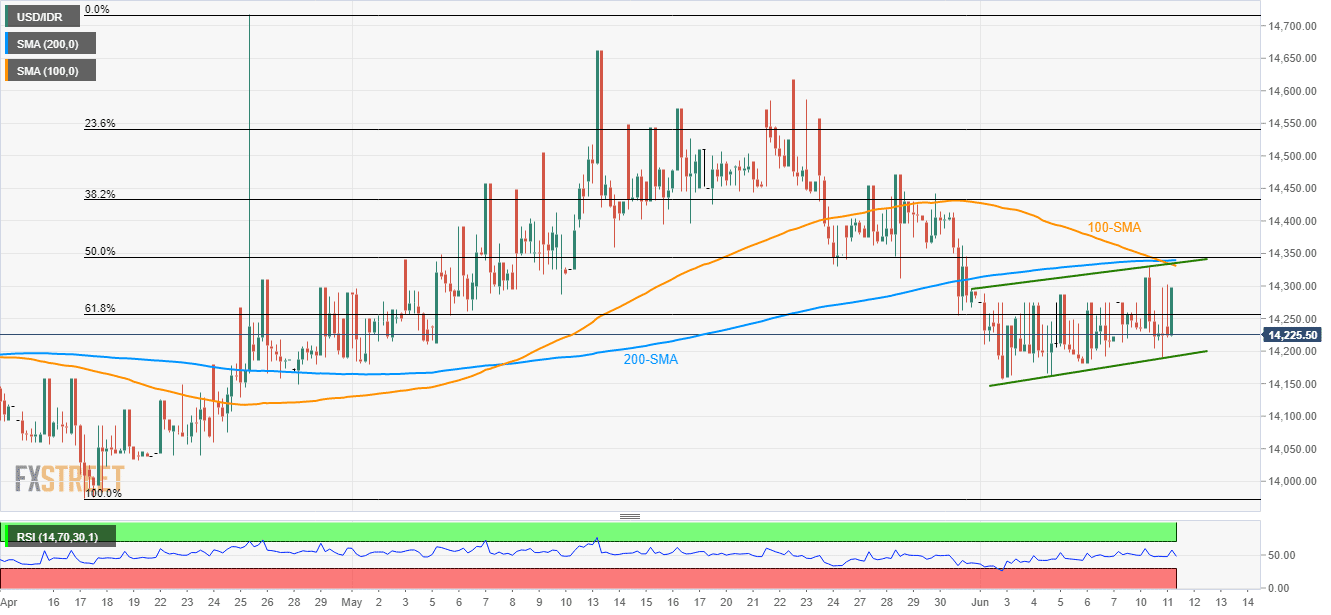 USD/IDR is on the bids near 14,298 while heading towards a much important resistance confluence during early Wednesday.