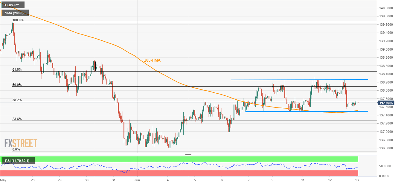 GBP/JPY’s latest up-moves from 137.55 can’t recall the bulls unless clearing a week old trading range. The pair currently trades around 137.70 during the early Asian session on Thursday.