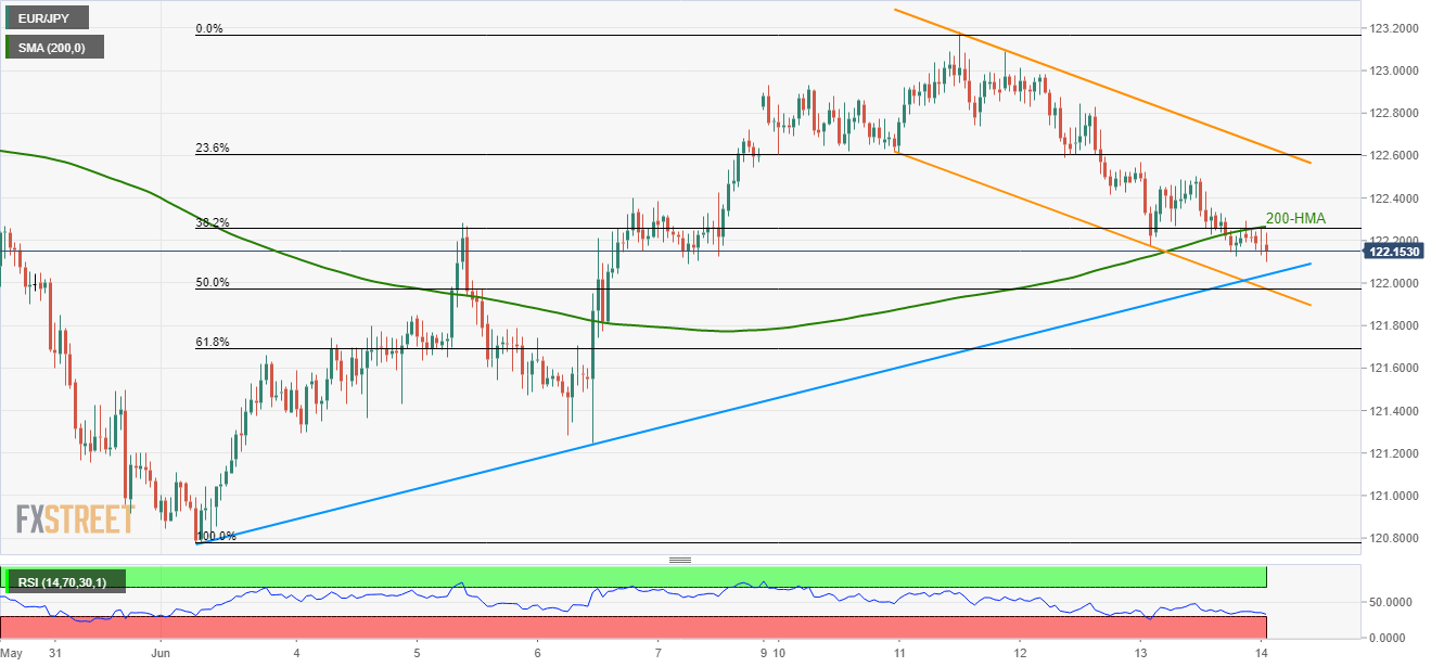 Meanwhile, 38.2% Fibonacci retracement and 200-hour moving average (HMA) offers a resistance confluence near 122.25/30, a break of which can propel the quote to 122.50 and then to channel’s resistance of 122.65.