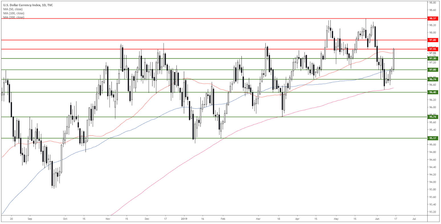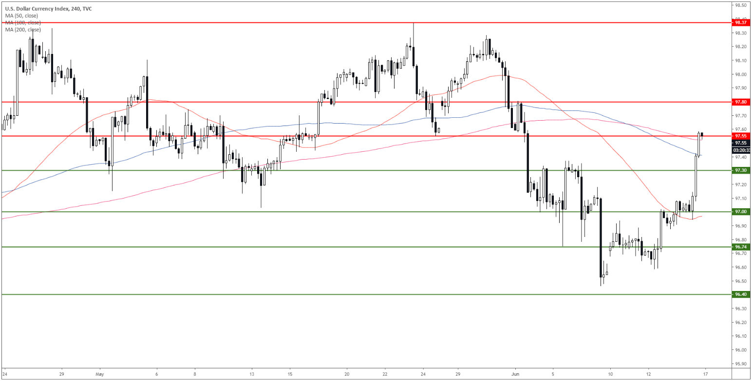- DXY broke significantly higher on Friday reaching 97.55 resistance.