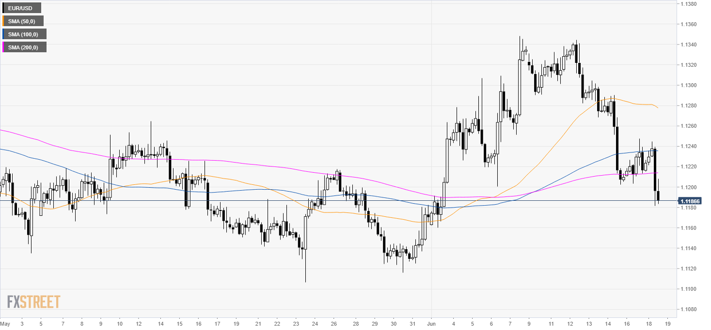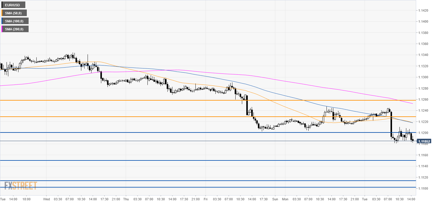 - EUR/USD broke below a significant support at 1.1200 figure.