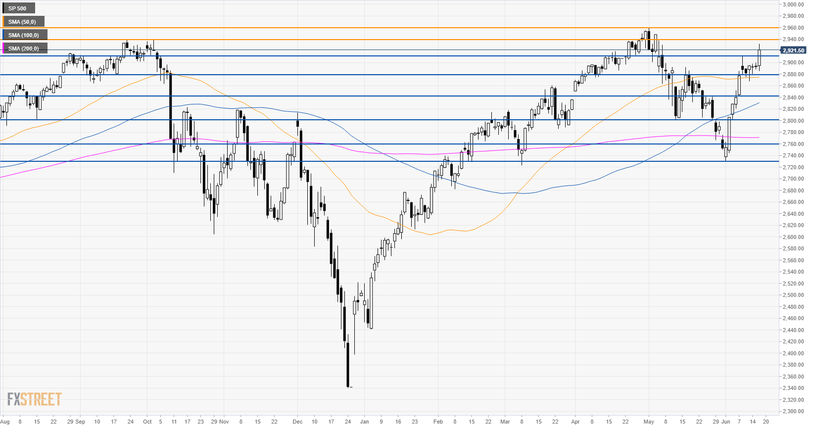 The S&P500 finally broke above the 2,910.00 resistance. The market is bullish above the main daily simple moving averages (DSMAs).